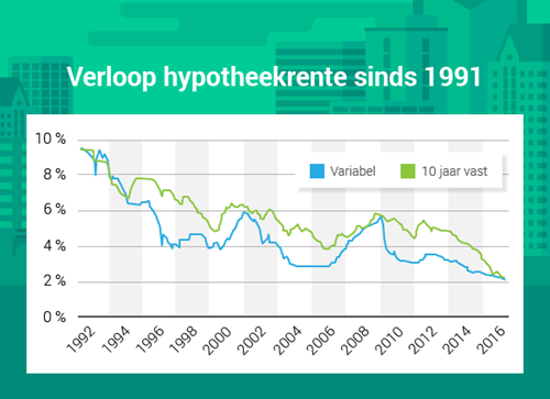 Variabele hypotheekrente bijna gelijk aan 10 jaar vaste hypotheekrente