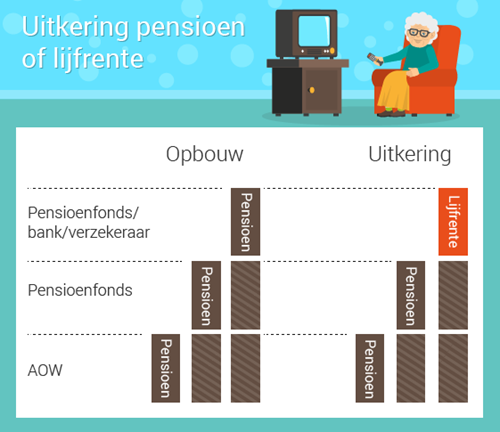 Voor velen bekend maar voor de zekerheid toch even de basis: wanneer je werkt, bouw je een wettelijk pensioenrecht op. Met pensioen bedoelen we in dit geval AOW. AOW is het pensioengedeelte dat je maandelijks van de overheid krijgt uitgekeerd vanaf je pensioenleeftijd. AOW is wél pensioen, maar heeft verder nog niets met lijfrente te maken.