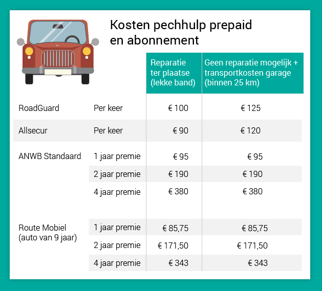 Of je met prepaid pechhulp goedkoper uit bent, hangt helemaal af van het aantal keer dat je daadwerkelijk autopech hebt. Bij bijvoorbeeld vier keer een lekke band in één jaar heb je juist hogere kosten (€ 360 /  400) dan wanneer je dat jaar een abonnement had.