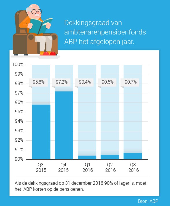 De zogenaamde dekkingsgraad is een manier om de financiële situatie bij een pensioenfonds te beoordelen. Als deze graad 100 procent is, krijgt het fonds precies evenveel inkomsten binnen als er aan (toekomstige) pensioenen uitgekeerd dient te worden. Is het minder dan 100 procent, dan dreigt op termijn een tekort als er niets verandert aan de balans tussen de inkomsten en uitgaven. Onder andere bij het ABP, het grootste pensioenfonds van Nederland, is dit scenario reëel.