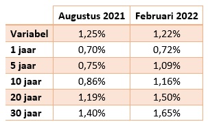 In de afgelopen twee weken hebben bijna alle geldverstrekkers de hypotheekrente verhoogd. De kans is groot dat het hier niet bij blijft. Een hogere hypotheekrente betekent een hogere hypotheeklast. Dit geldt uiteraard niet als jij een rentevaste periode hebt die nog loopt.